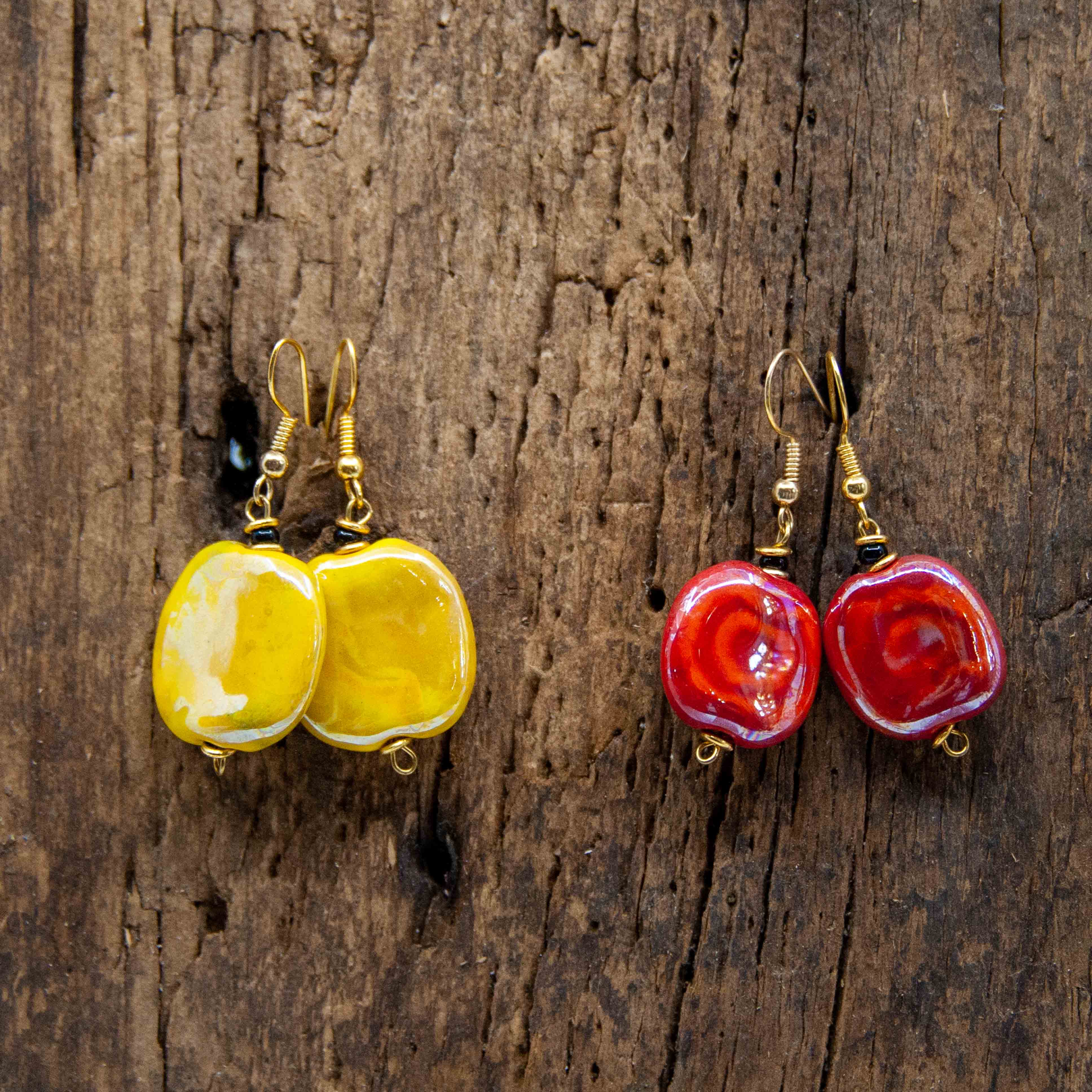 Authentic Kazuri Mustard Bead Set: Earrings, Necklace & Bracelet