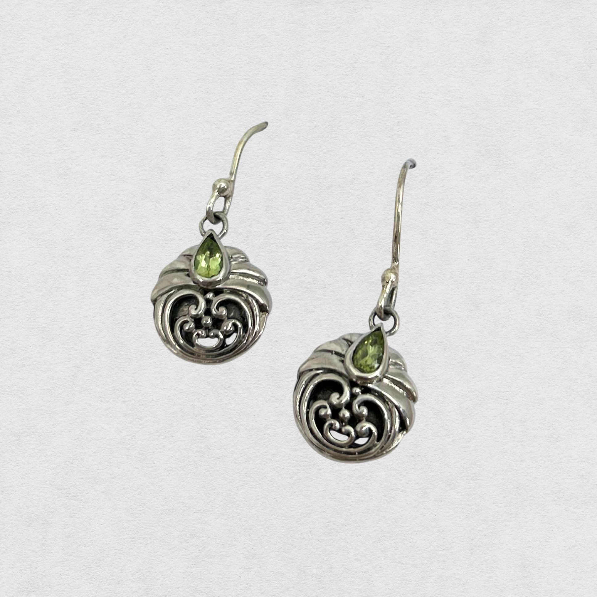 These unique amethyst earrings featuring a roses and garden motif out of sterling silver were hand crafted in Bali by local artisans..