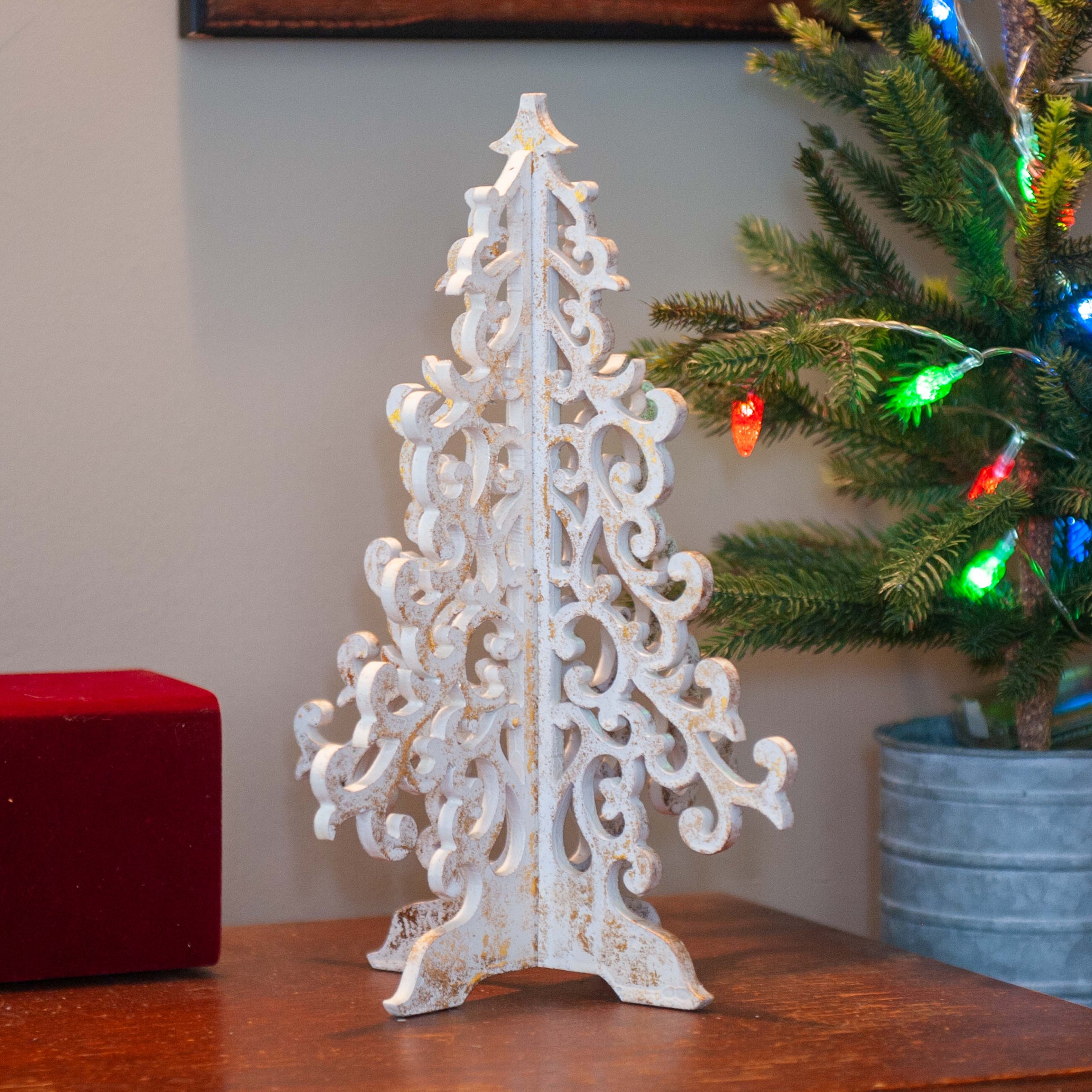 Yes, we have a selection of holiday trees available, ranging from miniature tabletop trees to larger statement pieces, crafted with care to add a festive touch to any space.