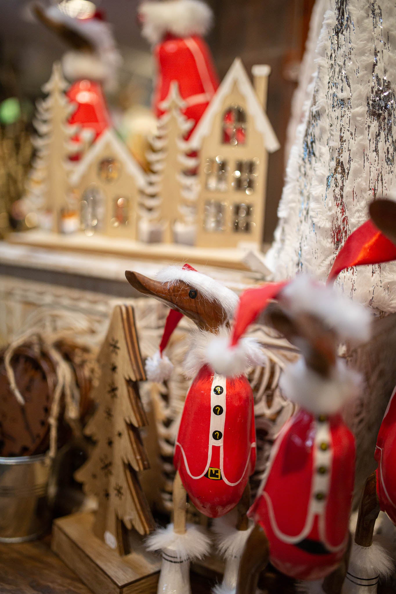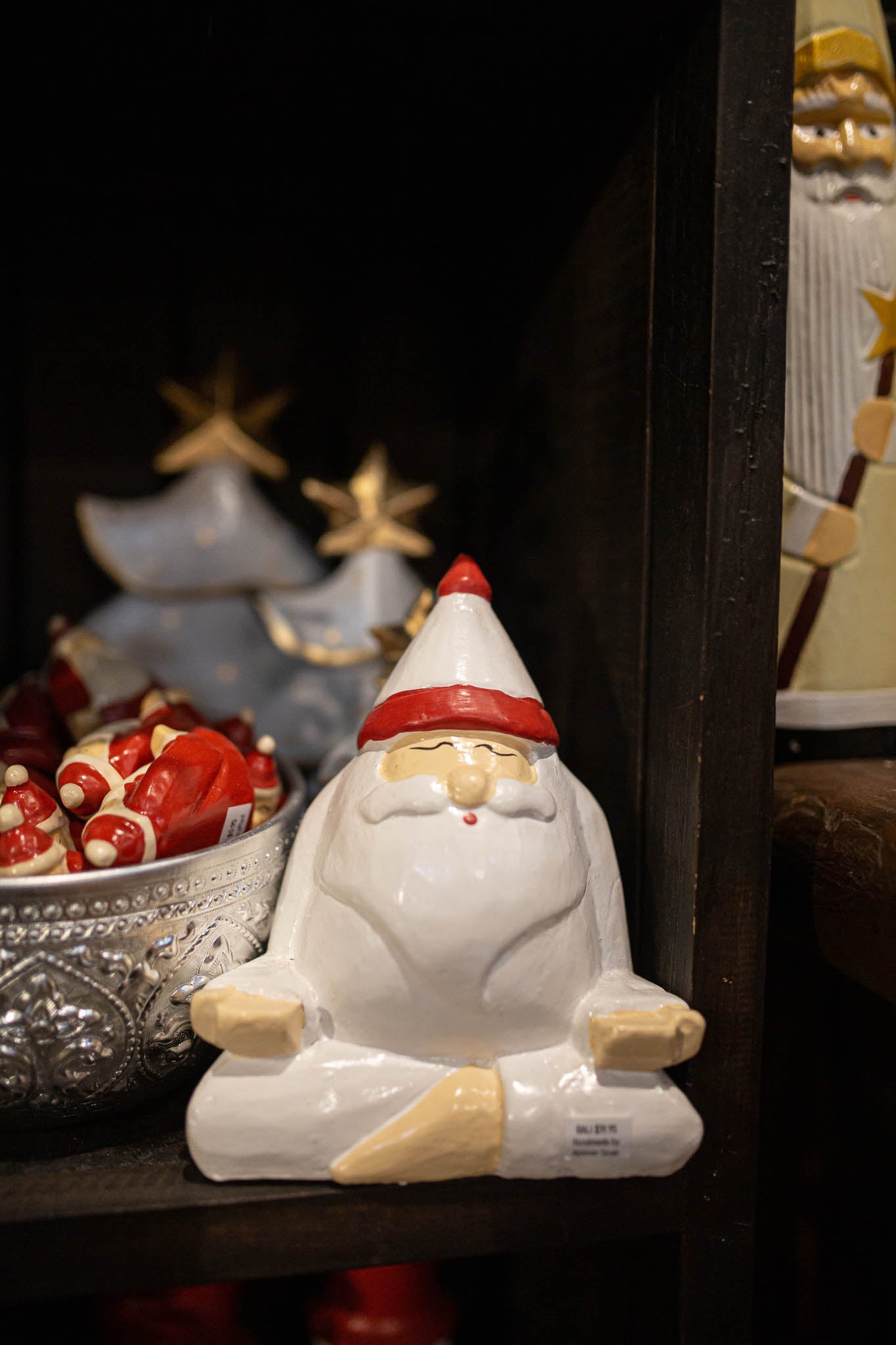 Handcrafted and painted by local artisans in Indonesia, this Mrs. Claus duck is created from bamboo root. A perfect addition to a children's room or lounge space, use these pieces to deck the halls during the holiday season in an alternative way.
