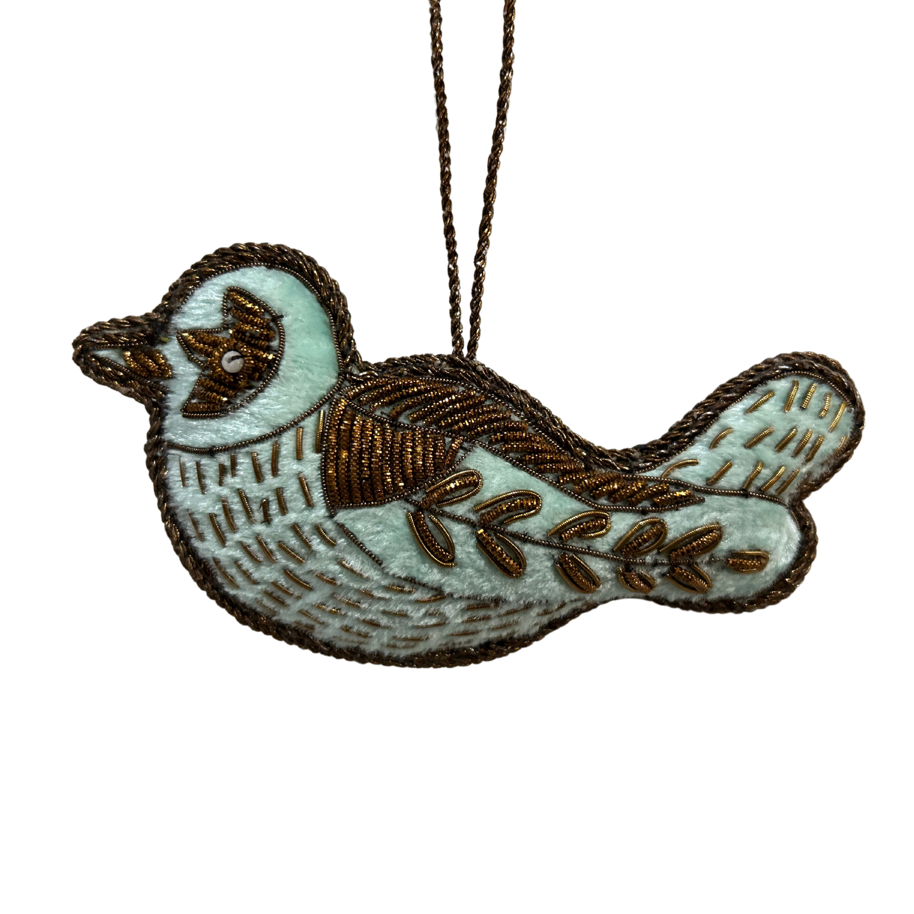 This flower ornament was handcrafted in India with zari embroidery and will make a beautiful, festive addition to any Christmas tree.