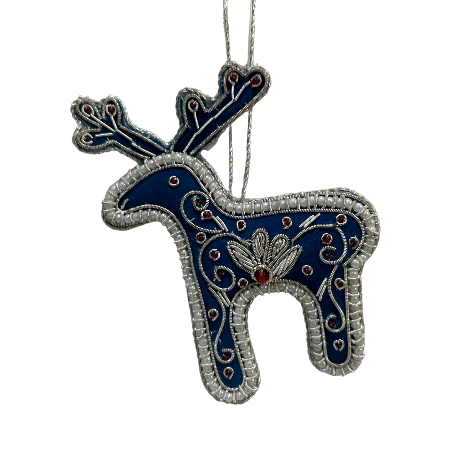 This maple leaf ornament was handcrafted in India with zari embroidery and will make a beautiful, festive addition to any Christmas tree.