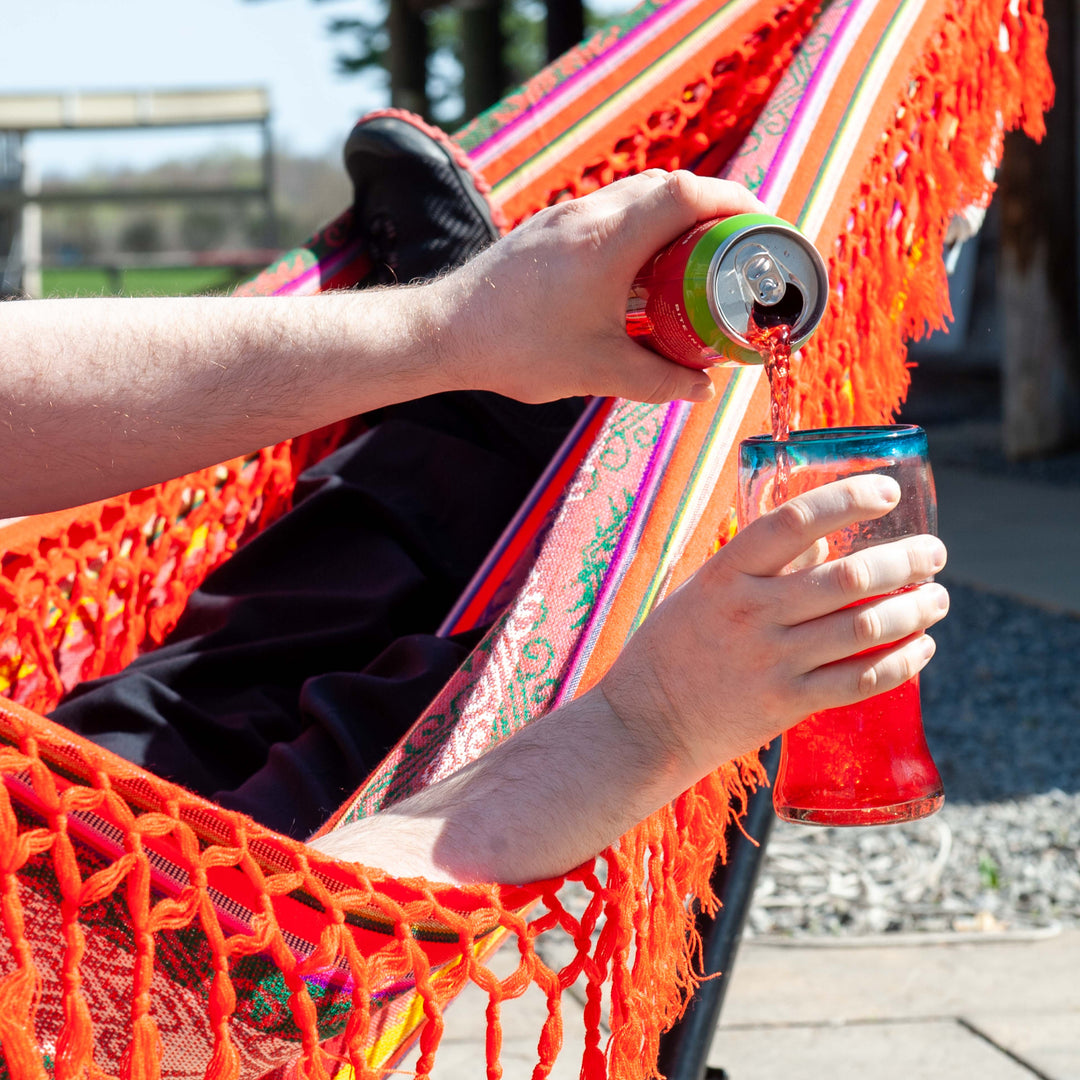 Our Mexican glass products come in a variety of shapes and sizes and add a splash of colour to any setting. The glass is mouth-blown, made from recycled glass, primarily tequila and liquor bottles that are melted down and reformed into these beautiful shapes bringing a taste of fiesta to your table!
