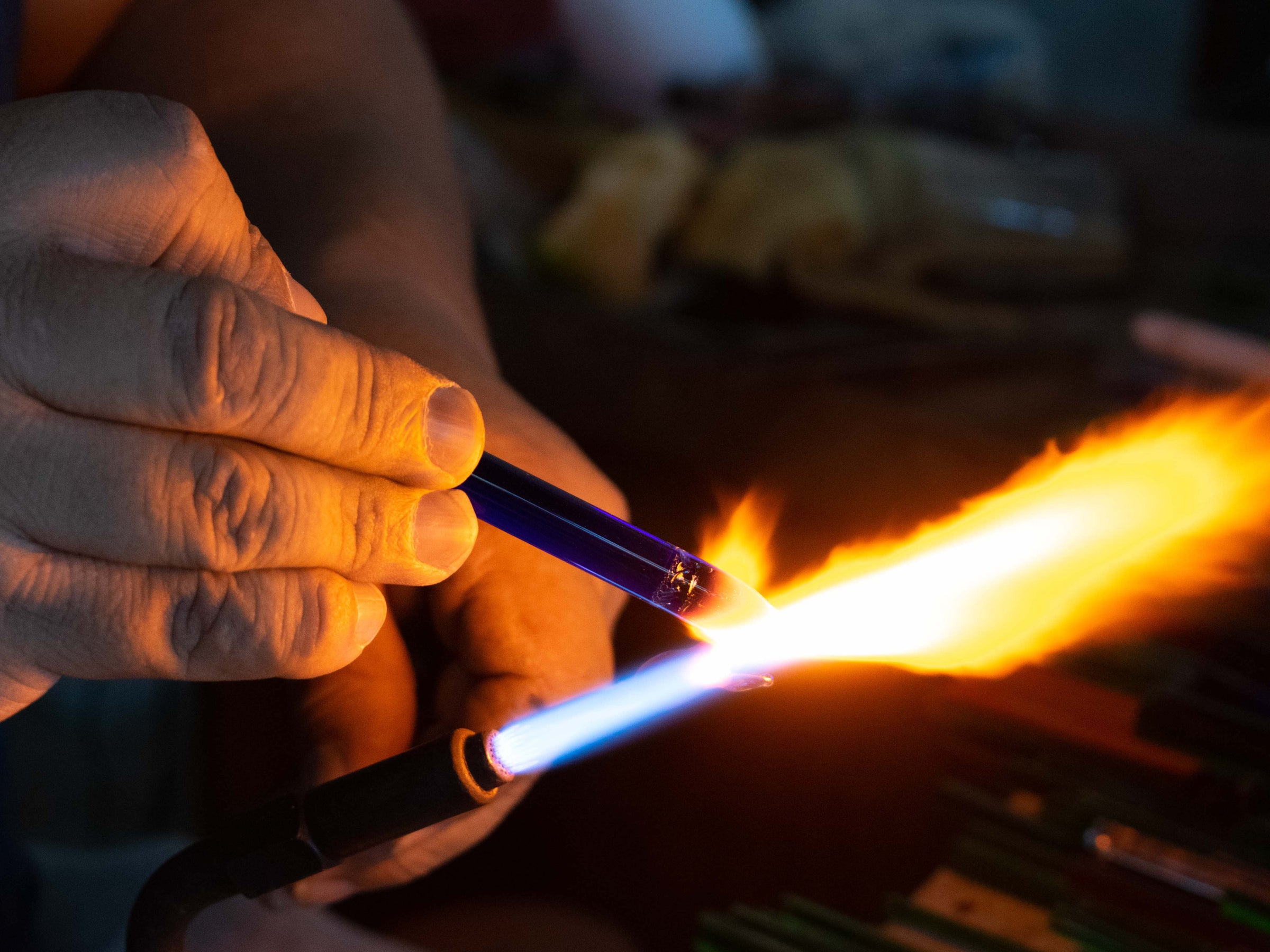 Juan works in a city in Mexico, where he has honed his fine glass craftsmanship for over three decades. Alongside his extended family, multiple generations are involved in the production process.