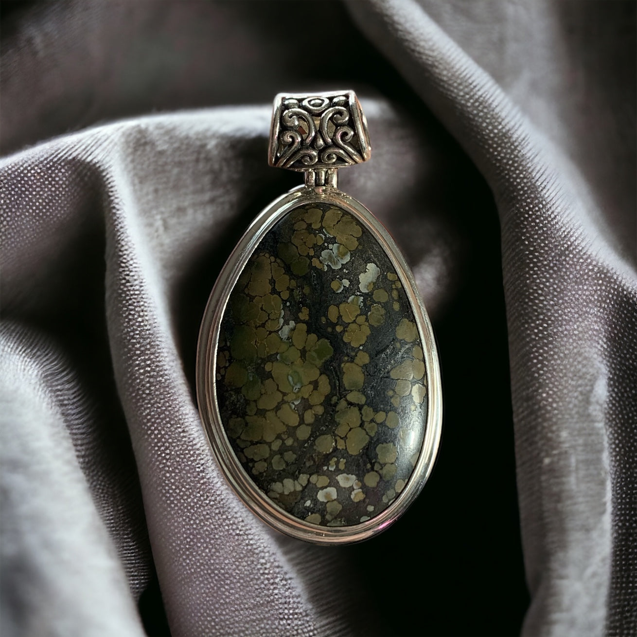 This turquoise pendant is handcrafted in Bali, beautifully set with a sterling silver accent at the top of the pendant.