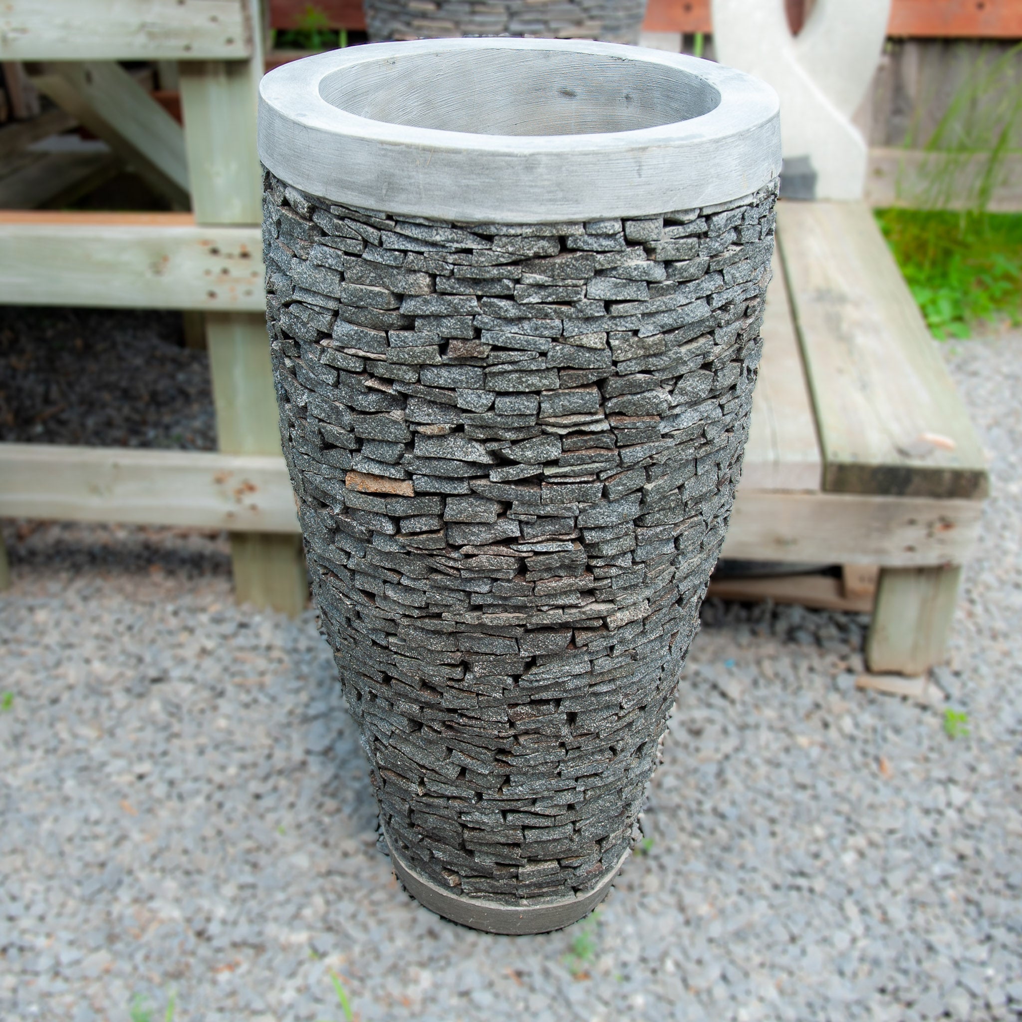 This cement planter wrapped in grey marble stone fits in with just about any home style modern to minimalist, rustic too contemporary. These are handcrafted in Indonesia. Perfect for the garden, porch or in the home for anytime of year.