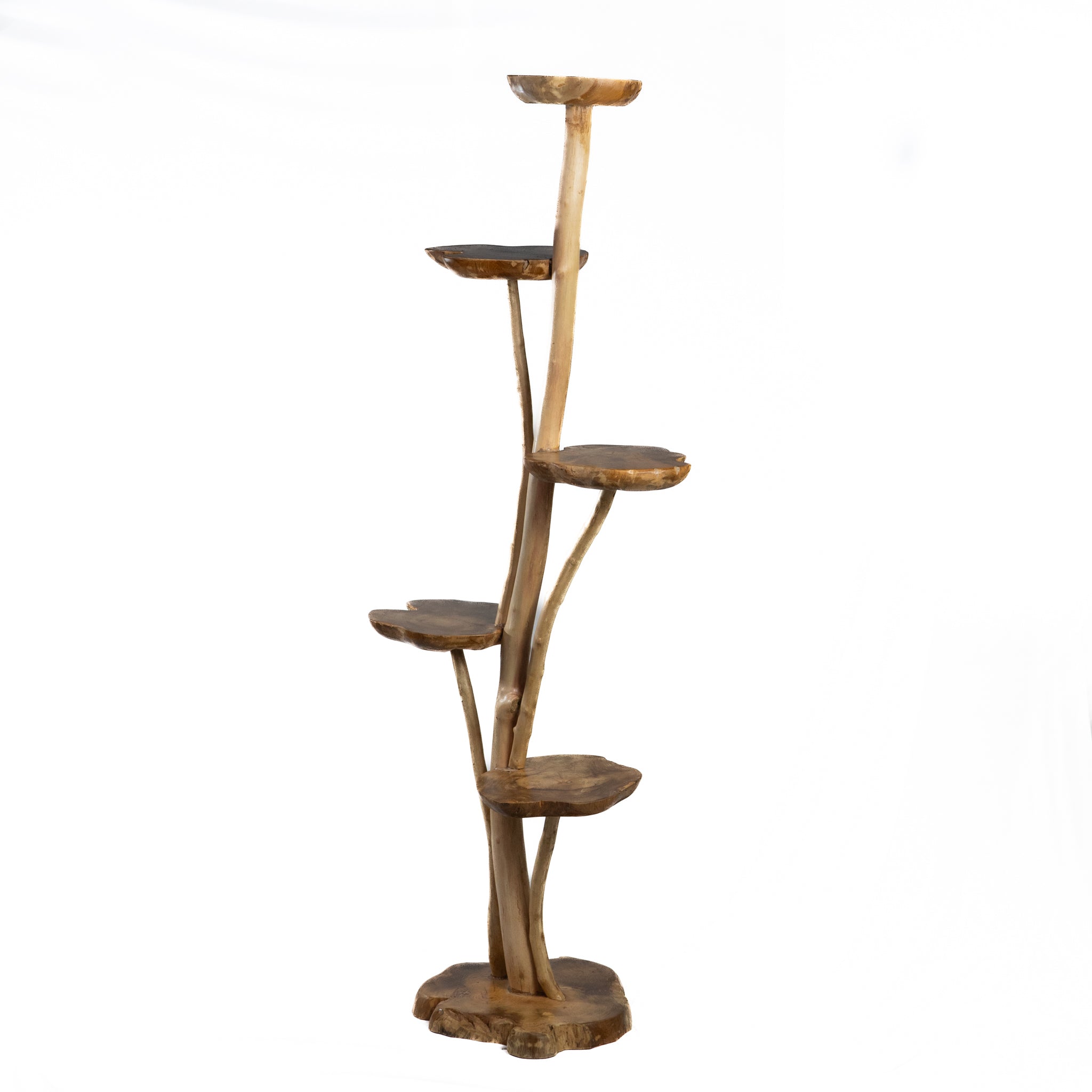 Each of the five graduating shelves offers space for books, plants, or curated treasures, while the natural teak grain brings an earthy richness to any room. Strong, minimalist, and full of intention, it blends effortlessly into both contemporary and rustic spaces.