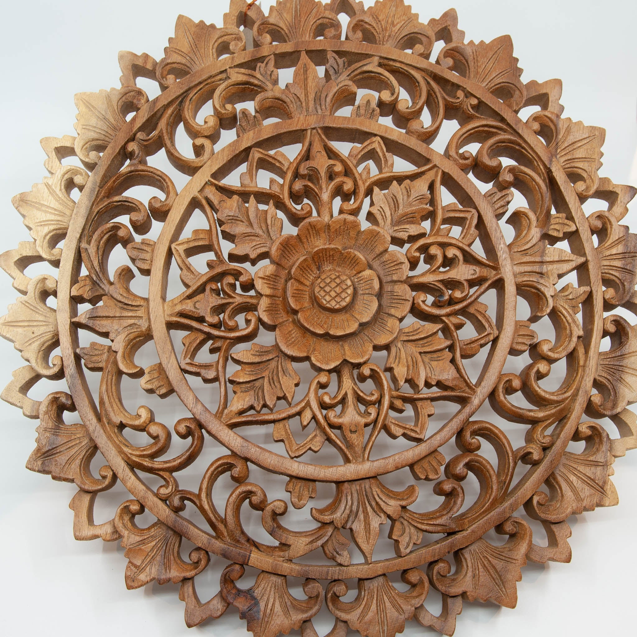 Hand carved by local artisans in Indonesia, this piece is crafted from suar wood. The om mantra is a sacred sound, often known as the sound of the universe. Add this carving to your home to symbolize unity and preservation.