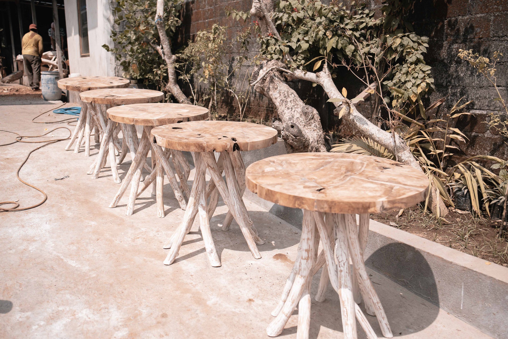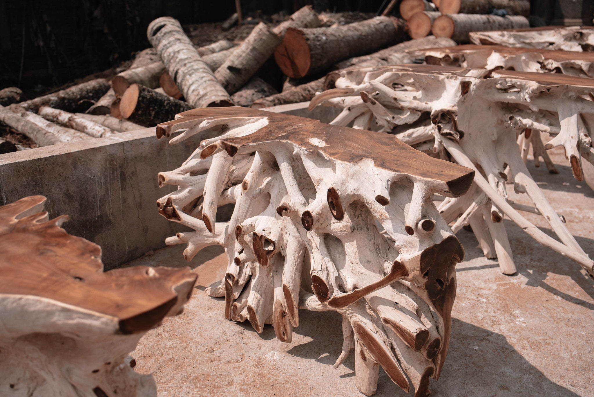 Materials: Our tables are crafted using various woods, including teak, mahogany, mindi, and reclaimed wood. Unique pieces may even feature root wood. Specific details are provided in the product descriptions.
