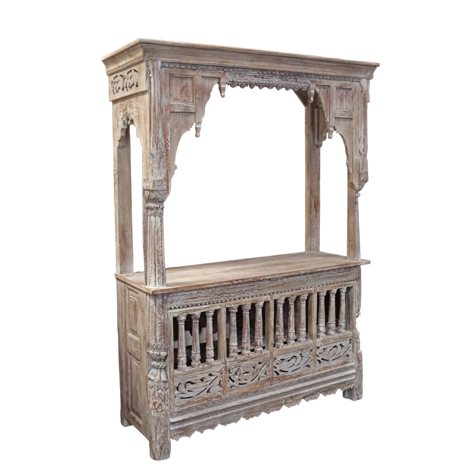 Handcrafted in India by skilled artisans, the Indigo Block Print Console is a striking blend of tradition and functionality. Made from whitewashed mango wood, this piece features two doors adorned with hand-carved blue square designs, inspired by vintage wooden block prints once used in textile making. Each carved square tells a story of craftsmanship and cultural heritage, adding texture, depth, and a hint of colour to the console’s soft, weathered finish. Ideal for entryways, living rooms, or as a unique media stand, this console brings both artistry and storage into your space.