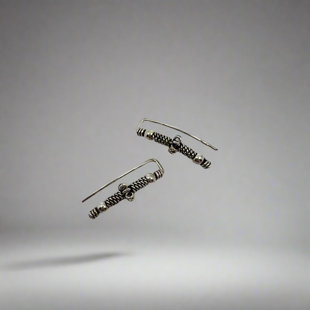 These stunning climber earrings feature a simple silver diamond pattern that works up the ear in a gentle curve. Hugging the outside of your ear, these earrings secure with a long wire back to help stabilize the climbing design.