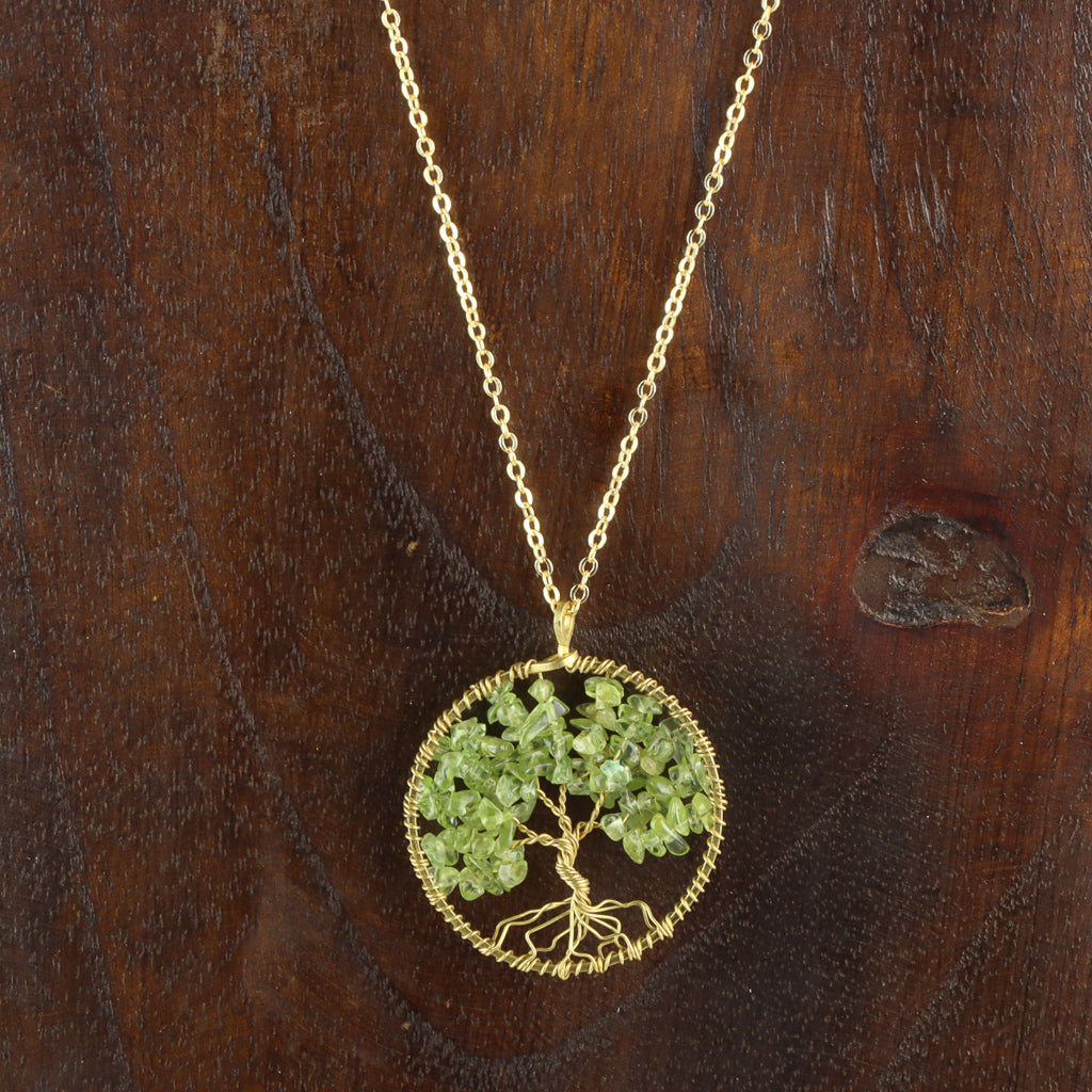Collier Arbre de Vie Plaqué Or - Aventurine Verte
