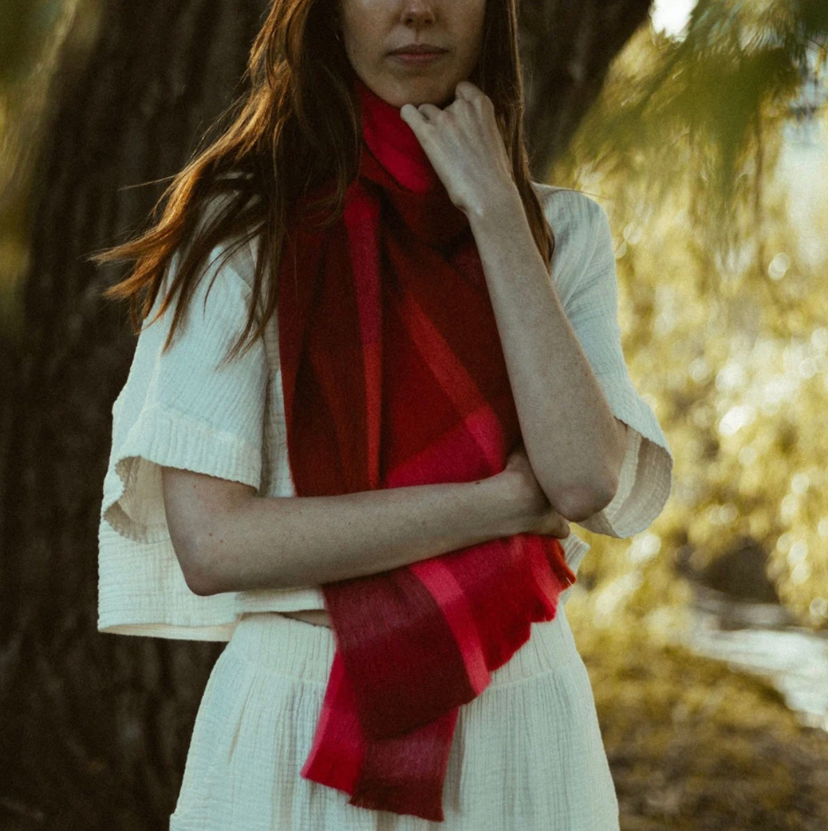 Cette écharpe est un mélange d'alpaga aux bords sans couture et d'une couleur marron foncé. Il s'agit d'une écharpe artisanale unique, équitable et au toucher luxueux et ultra-doux.