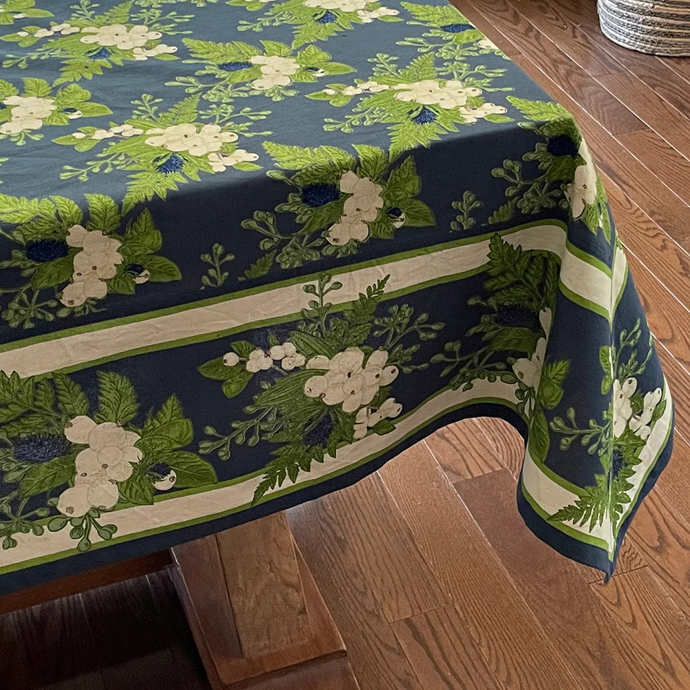 Crafted in India using 100% cotton fabric, this beautiful tablecloth features a blue floral design, which is sure to add a fun touch to your table setting.