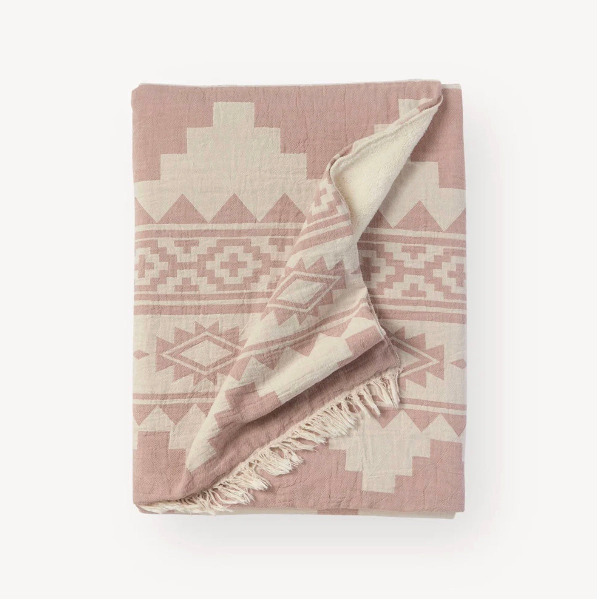 Asymmetrical and soothing, this weave we’ve named Atzi, the Nahuatl (Aztec) word for rain. This has a jacquard weave with Turkish cotton on one side, and a high-quality fleece on the other. We’re talking ultimate cozy.