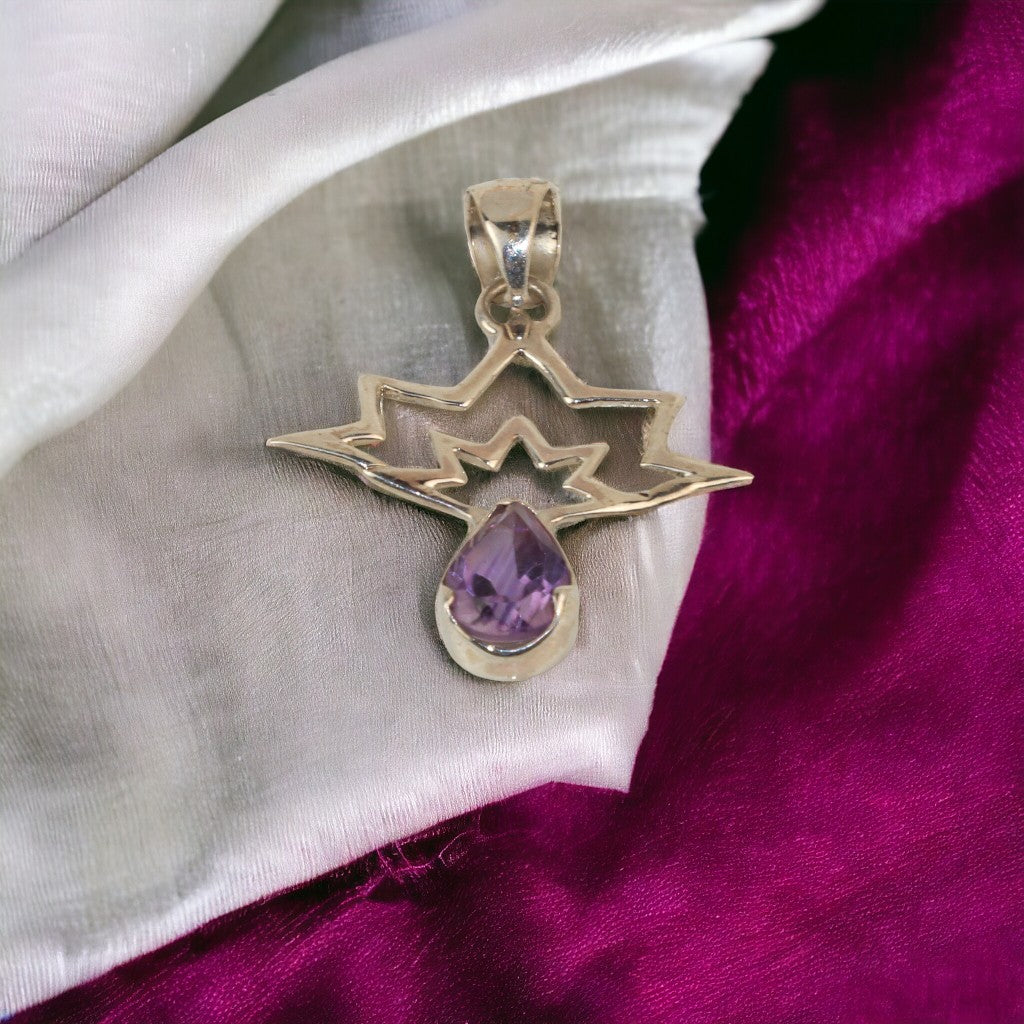 Un grenat, pierre porte-bonheur de janvier, parfaitement taillé pour orchestrer la lumière et surmonté de volutes florales.