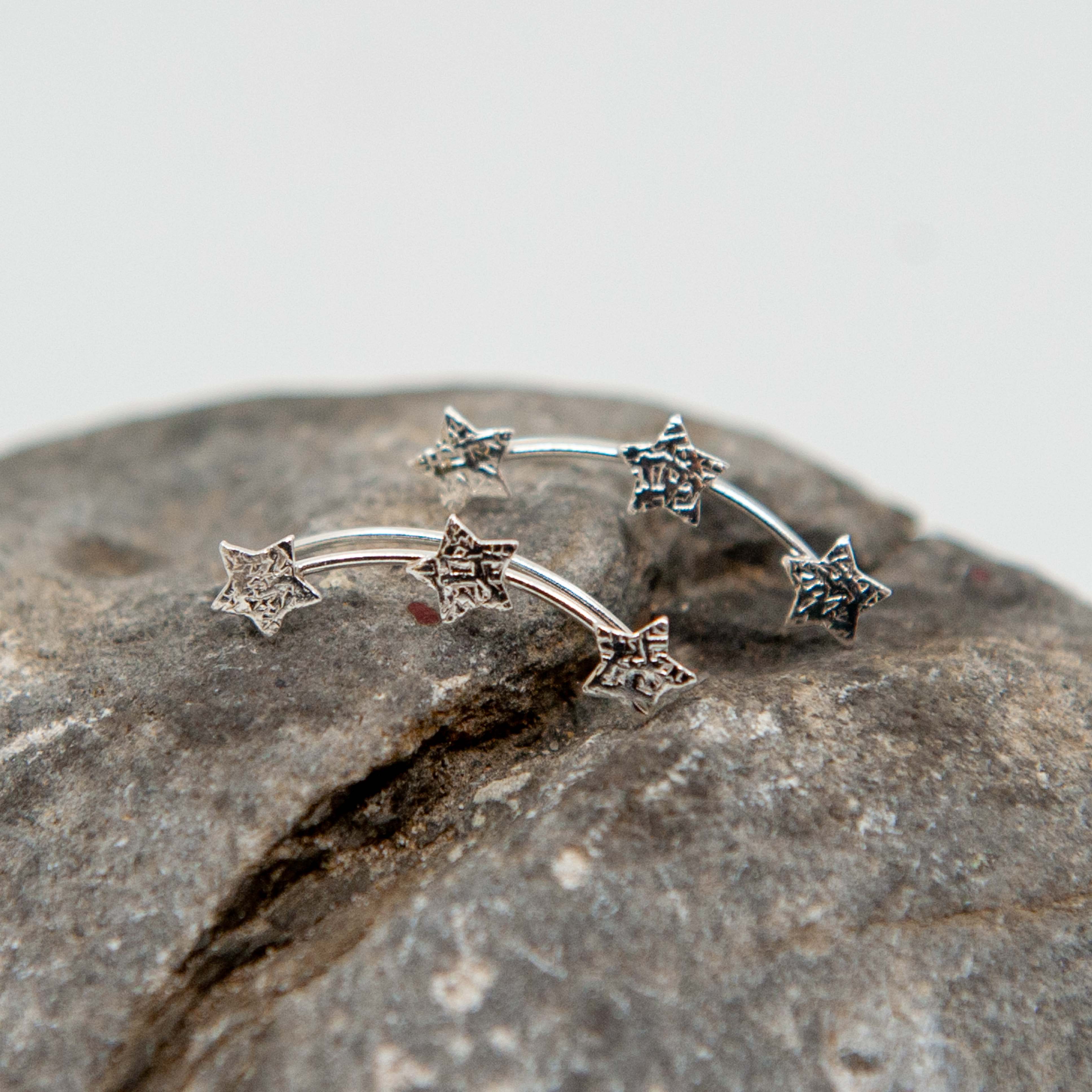 Ces superbes boucles d'oreilles grimpeurs présentent un simple cercle en argent et un motif de diamants qui remontent l'oreille dans une courbe douce. Serrant l'extérieur de votre oreille, ces boucles d'oreilles se fixent avec un long fil arrière pour aider à stabiliser le design d'escalade.