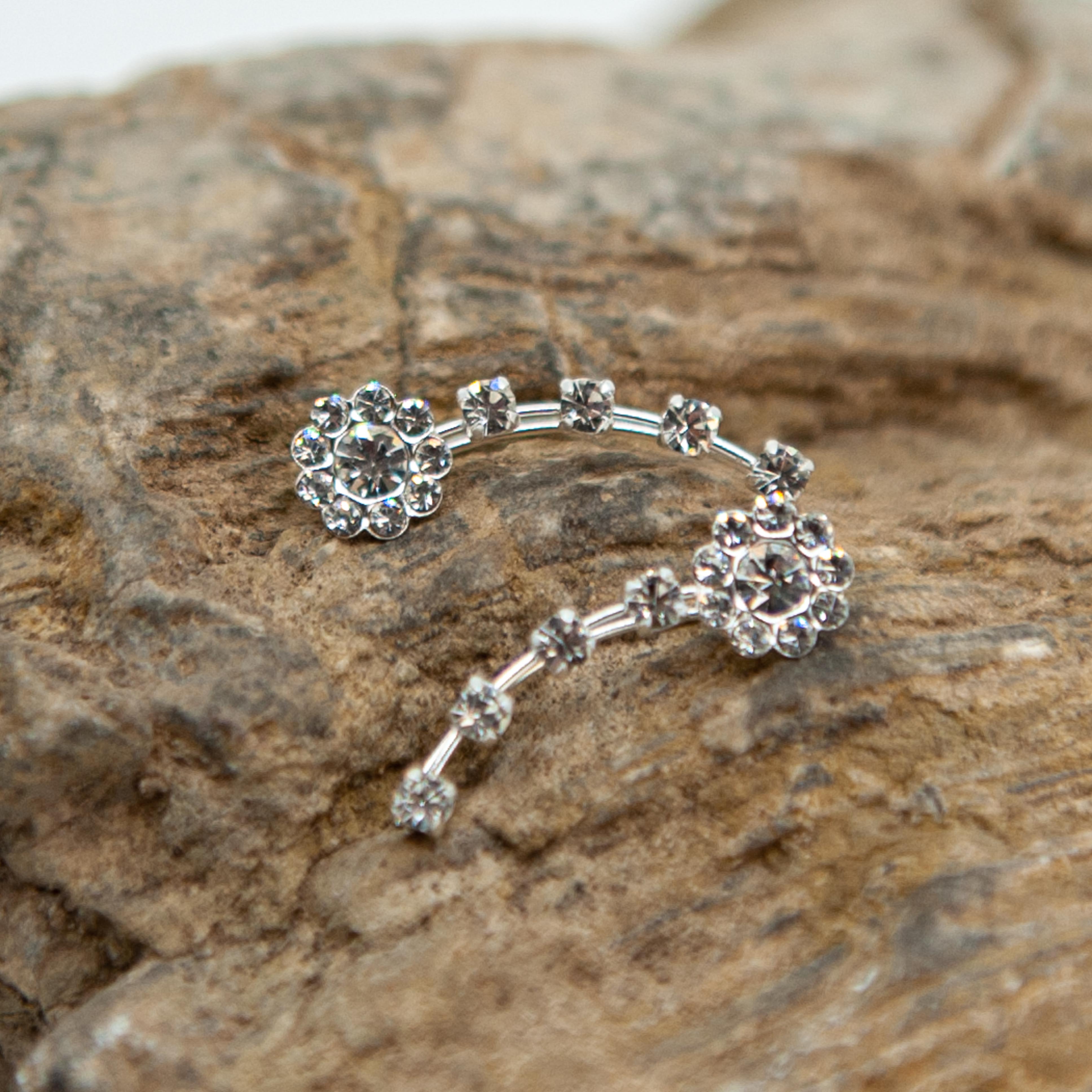 Ces superbes boucles d'oreilles grimpeurs comportent un ruban de cercles qui deviennent progressivement plus petits au fur et à mesure qu'ils remontent l'oreille dans une courbe douce avec quelques jolies pierres de zircone pour ajouter de la brillance supplémentaire . Serrant l'extérieur de votre oreille, ces boucles d'oreilles sont sécurisées avec un long fil arrière pour aider à stabiliser la conception d'escalade.