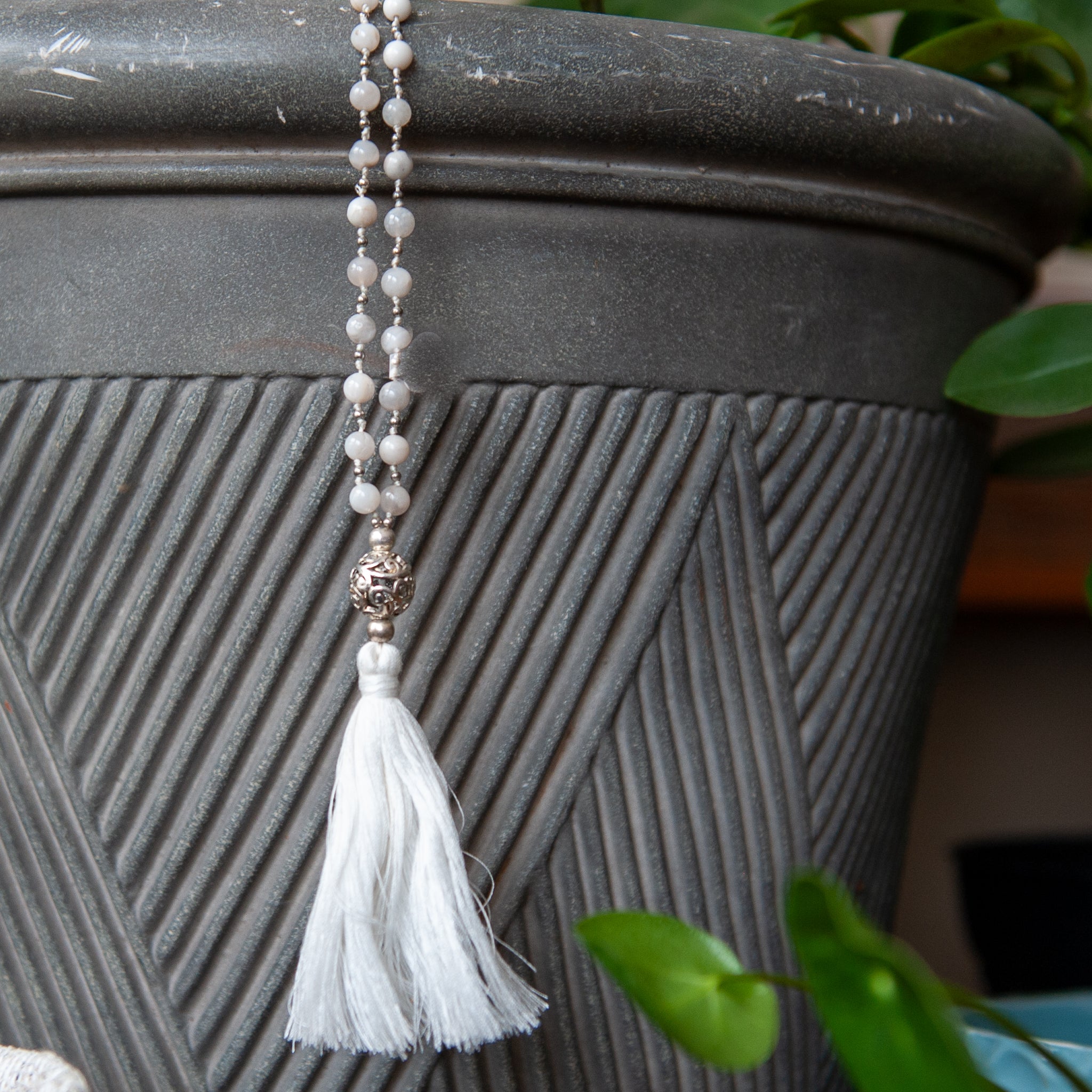 Wear this necklace on your daily ventures, or as focus beads, helping you meditate and stay grounded. The special properties of the chosen stones are what make the necklace all that it is… Since special gemstones and beads have spiritual and healing properties, wearing this mala necklace with silver ornament and tassel might just be what you need to have a better and happier day.