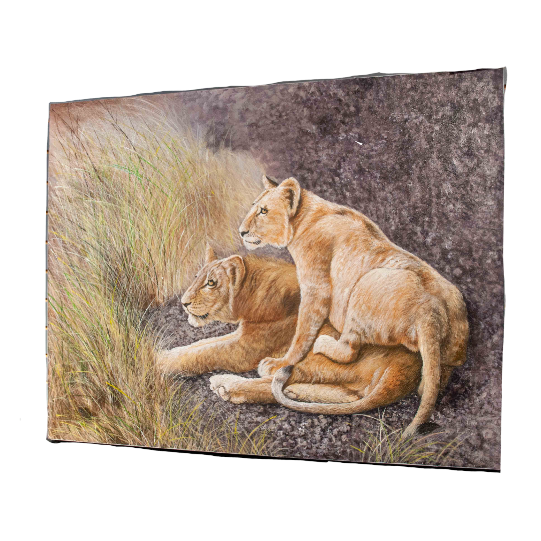 Maman Lion et Cub - Peinture