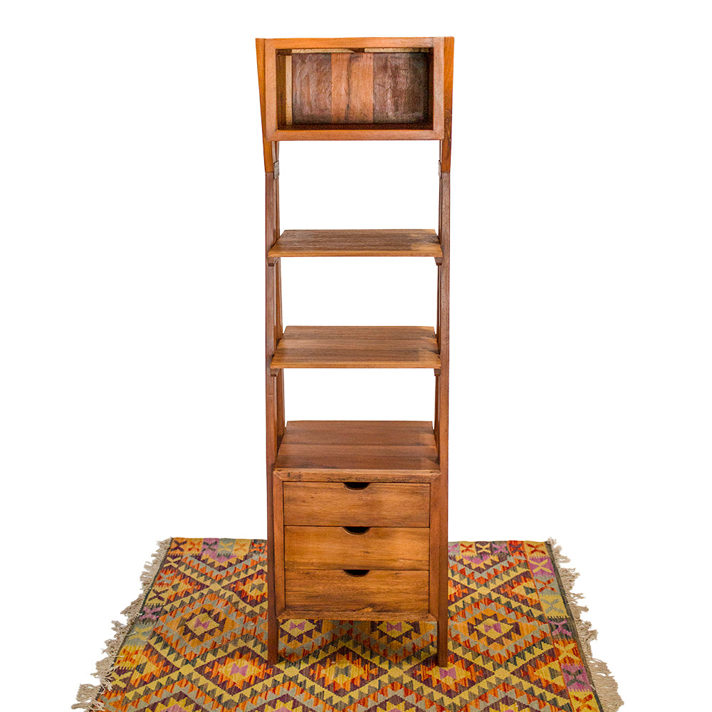 Cette armoire en bois de teck finement finie provient de Junthima Uiprasert de Chiang Mai, dans le nord de la Thaïlande et est parfaite comme unité de couloir ou d'entrée. Ses tiroirs compacts et sa conception unique en A le rendent pratique mais toujours magnifique.