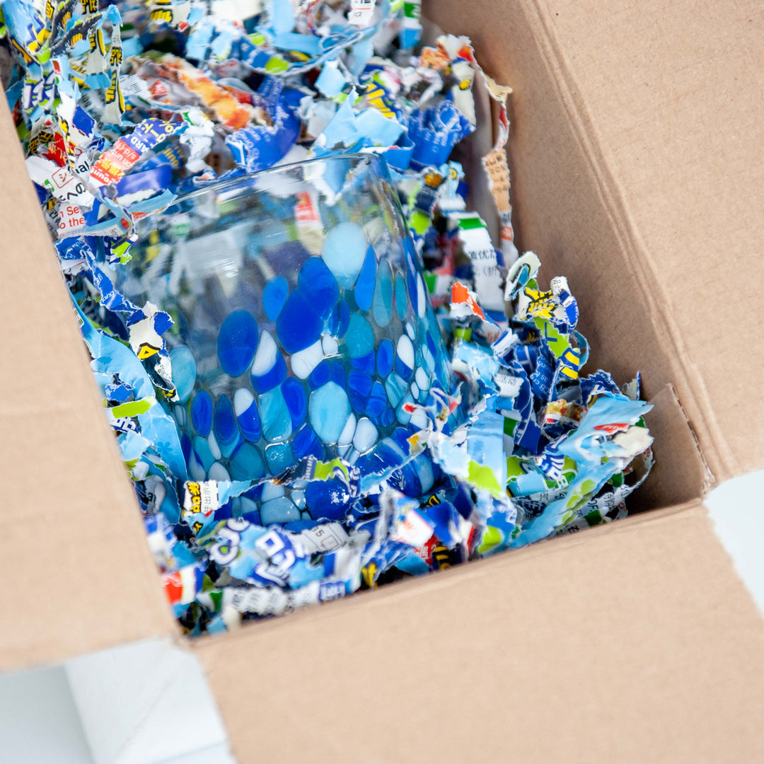 Shipping product around the world involves a lot of packing materials. Every year we have made a concerted effort to reuse as much of the original packing material as possible. This does involve a little extra work and organization on our part, but it also reduces costs, lowers waste and enables us to keep our prices low. We hope you will understand and appreciate why your art work is wrapped in reused paper.