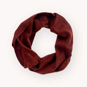 This scarf is an alpaca blend made with seamless edges, and a rust colour. This is a unique, fairly-traded, artisan-made scarf with a luxe, ultra-soft hand feel.
